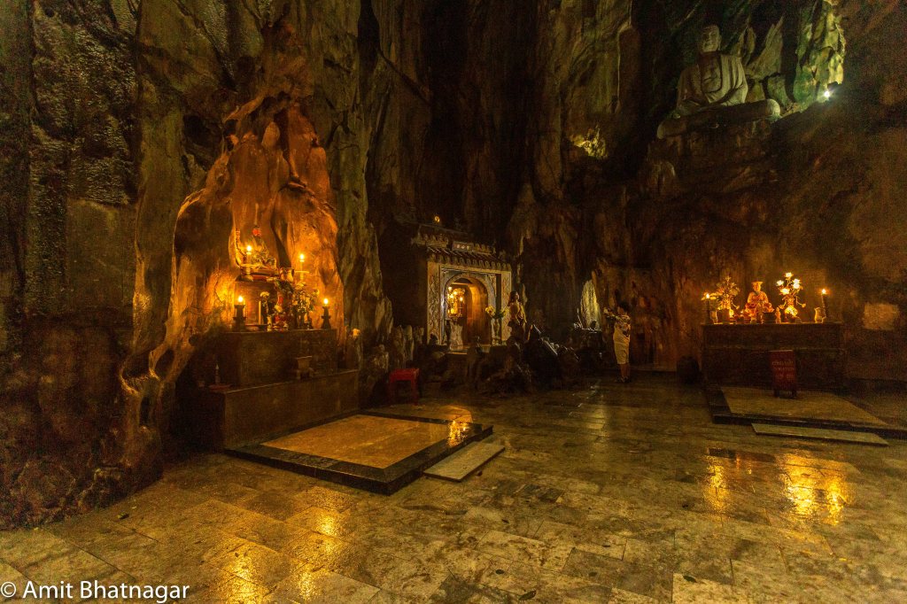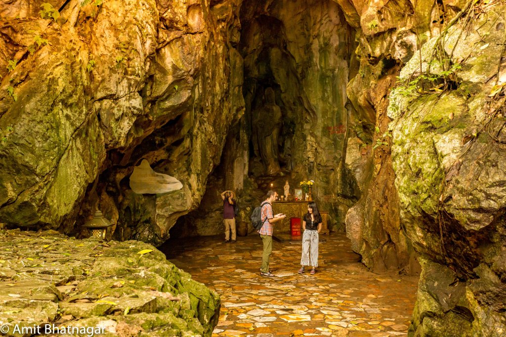 We had a evening flight out of Danang on the third day and we looked around for options to do something on the way to the airport. Someone recommended the Marble Mountain which is closer to Danang than Hoi An. This, based on the description, seemed a bit like a tourist trap. It was anything but! It was probably one of the highlights of the trip. You start with an elevator ride up to roughly the midpoint of the mountain. Stairs and walkways then connect to a series of caves with stunning sculpted statues of the Buddha. There are many caves and each is unique where some have very tiny entrances and others have some very narrow areas to explore inside. The highlight though is the main cave that is huge and has a hole in the roof that illuminates the chamber and makes for a magical appearance – fit for some Indiana Jones action. There is a lot of walking around that can be done, so better so be prepared, but it is super fun. The place has a very explorer feel with small walkways connecting the many caves. Some of the stairs are broken, others too narrow – everything is a small adventure.