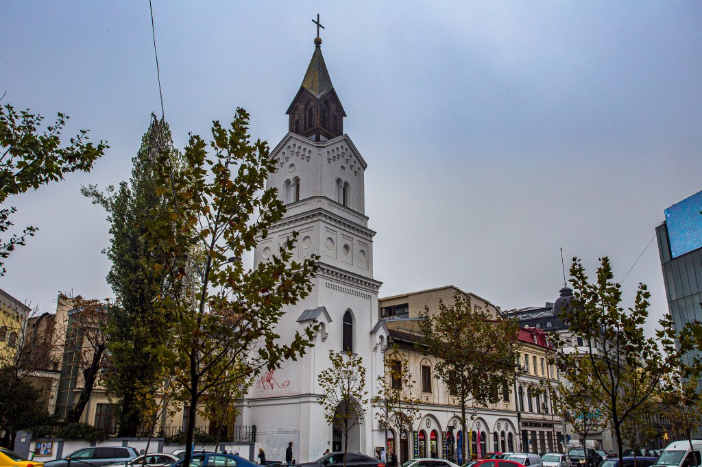 We hadn’t planned to spend much time inside but ended up walking to the lake and then having a glass of wine with lunch at Restaurant Pescăruș. The restaurant offered beautiful view of the lake and there were many families inside enjoying the view, open areas and great kid friendly food. There are also several stalls around the park selling snacks and munchies. We tried these crepes layered with jam – quite tasty, but very sweet. There were several art installations and statues, including one of Charles de Gaulle. The walk around the lake is lined with beautiful trees and is quite picturesque. We also came across few men fishing and they happily showed us their rich haul for the day. This took up all our planned time for visiting a nearby church and trying to walk to the top of the Arc – that activity was anyway closed for the day. We spent the rest of the afternoon taking a cab to the parliament building and talking a stroll around it – more of a very long walk. One of the highlights of the walk was to come across this very small church – Saint John Chrysostom Church. What it lost in size, it more than made up by its charming decor and beautiful setting. We did walk into the Parliament building but only to see an art exhibition and see the reception point of the full tour – which we never took.