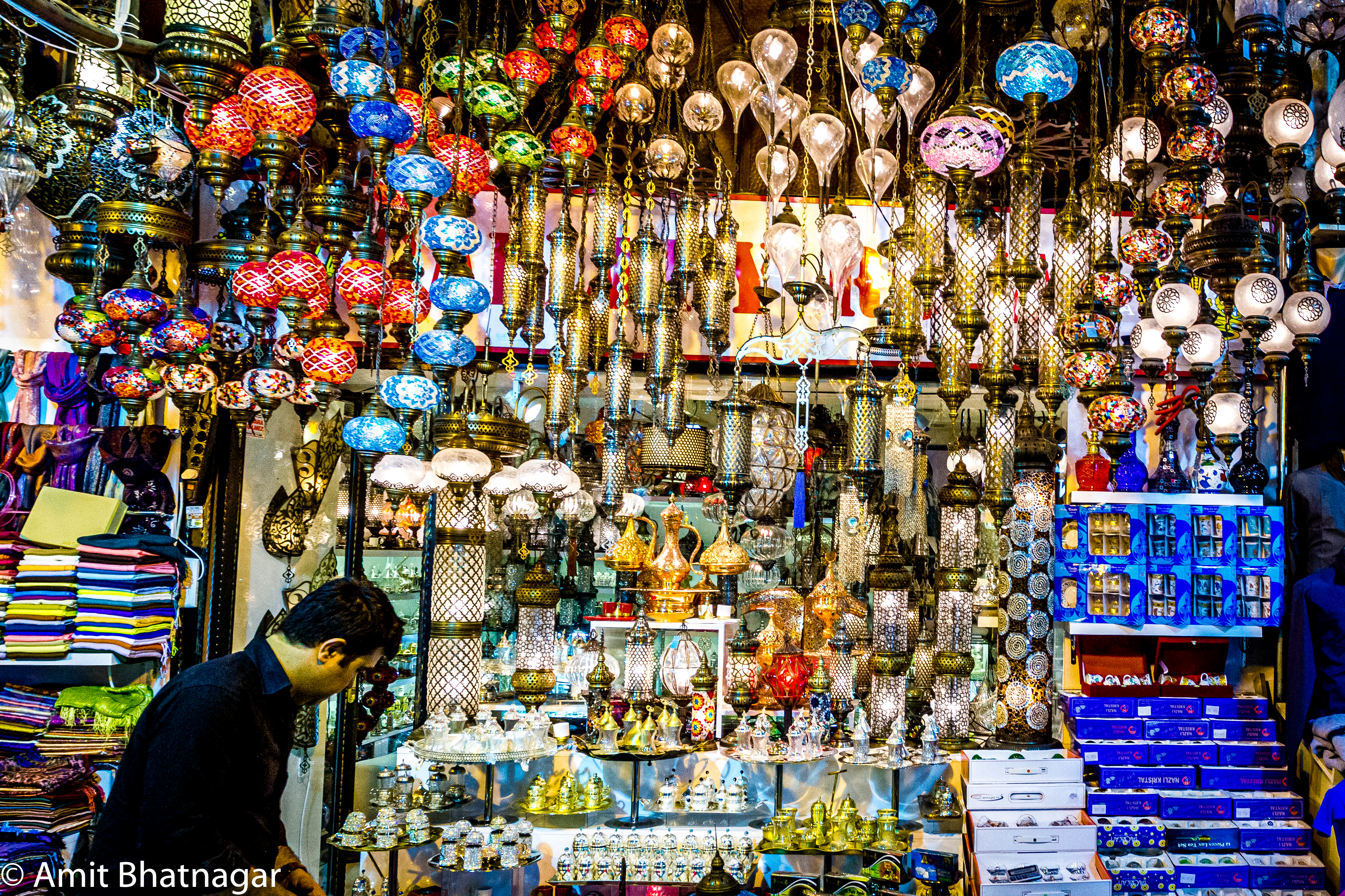 The Grand Bazaar is about 20 minutes walk uptown from the Hagia Sophia completely along the tram line or you could just hop on the tram. The real bazaar is indoors and while there are shops outside, those are no different from anything else in the area. Inside, is a different world, especially once you can find one of several entrances that aren’t all the most obvious – look for the word ‘Kapalicarsi’. The name means covered market and it is a massive single story structure from the fifteenth century that has endured several fires and natural calamities but has always come back stronger. The stores sell exotic teas, belly dancing attires, spices, local lamps, sweet treats made of dry fruits and lot of beautiful ceramics. More recently a few western product stores have opened, but there are only a few of them. The displays in most stores are lavish and eye catching and there is almost always the traditional ‘evil eye’ to ward of bad influences. Prices are rarely fixed and your ability to negotiate will be tested, but the quality of local products is usually exquisite. I bought some beautiful ceramics, sweets and a few exotic teas. Even if you don’t buy much, it’s a beautiful place to walk around, click a few pictures and watch shopkeepers sip black tea in small glass tumblers.