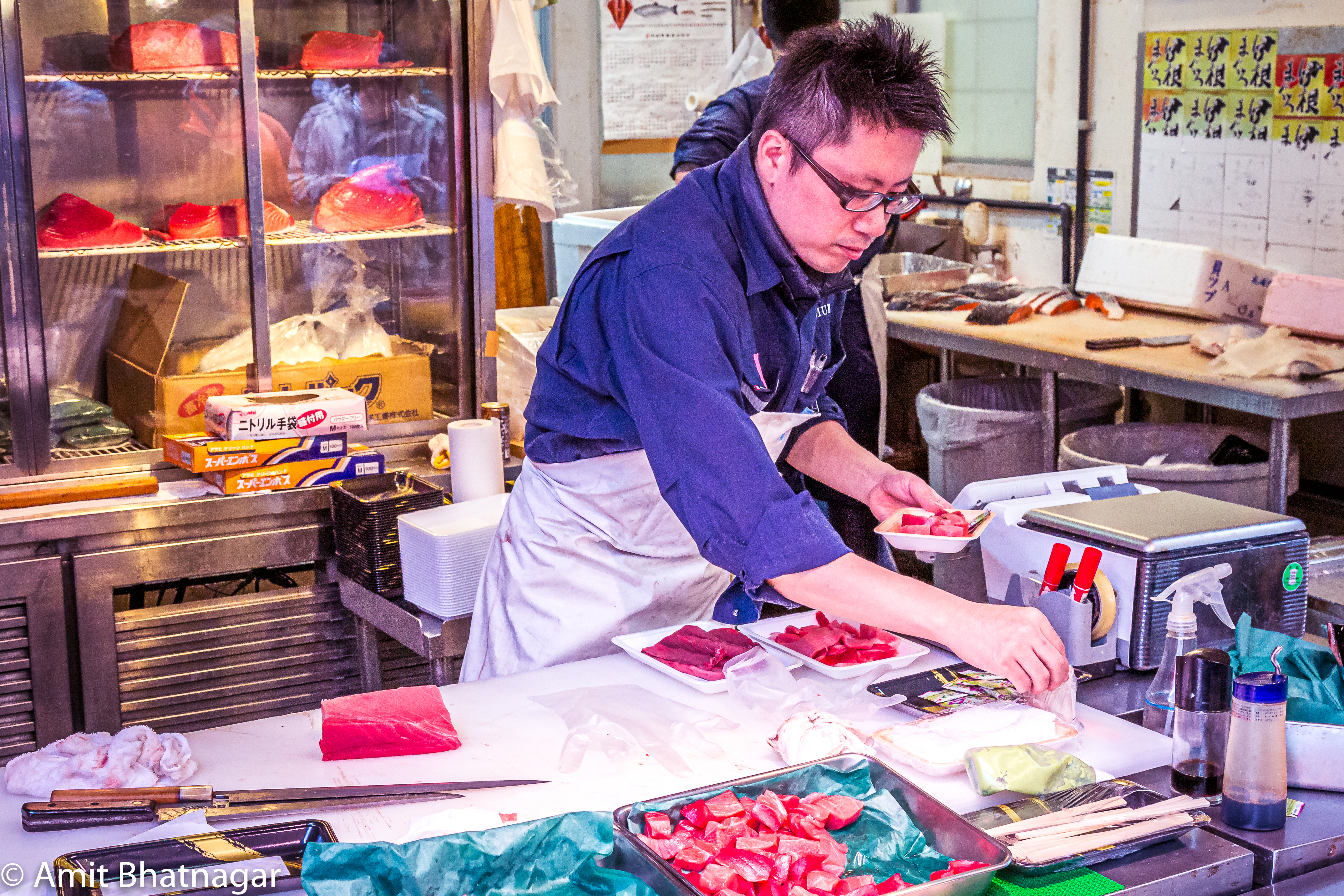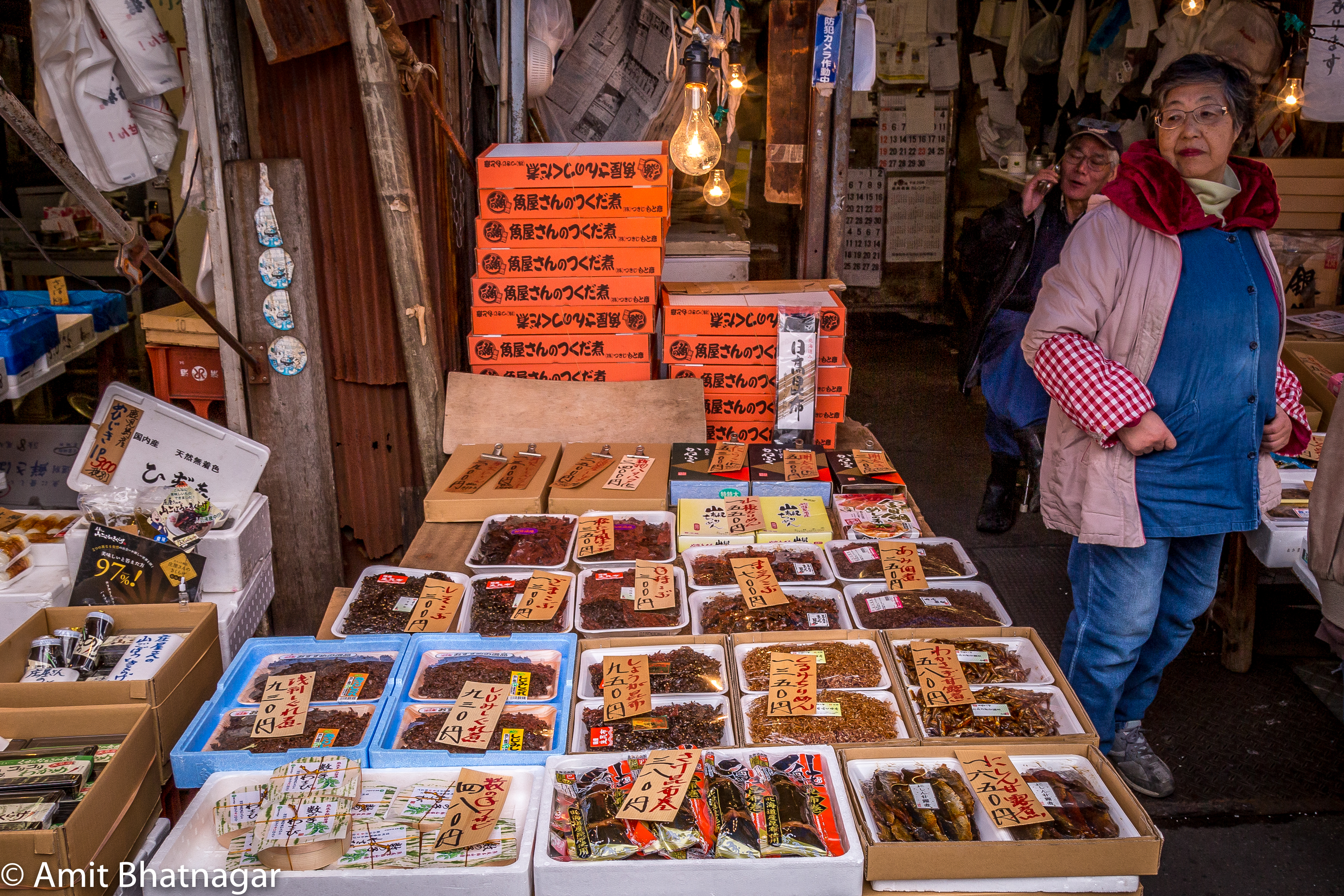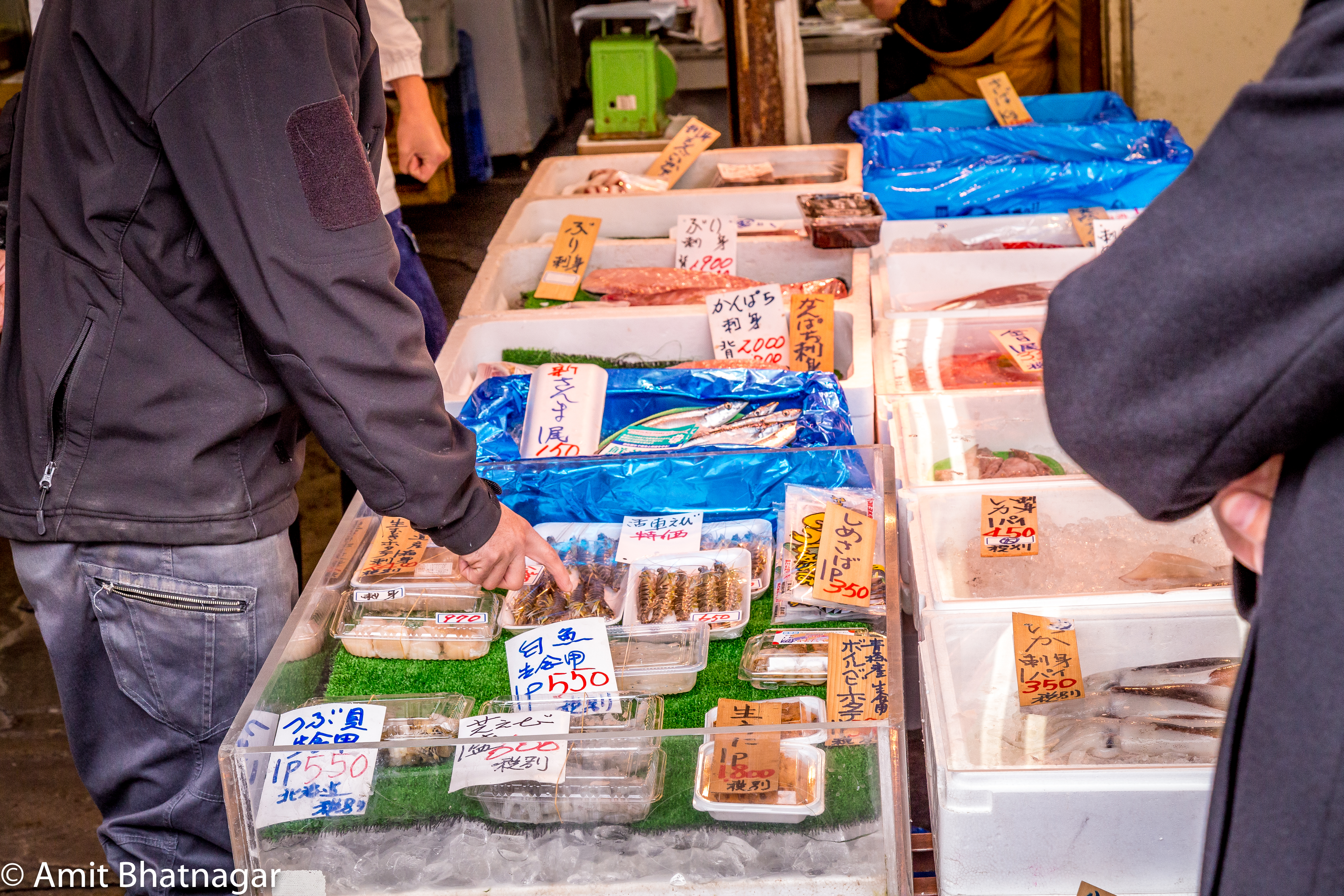 Finally – fish! Only one thing needs to be said unless absolutely needed, they don’t cook the fish. Eating a bowl of raw tuna and rice was a little overwhelming on the first bite but once you get used to the flavor, it is delicious. Walking around the markets you will find these samples of prawns, squids, and other fish – they are delicious. There is also a range of spices available just anything to make a fish taste any better than freshness!