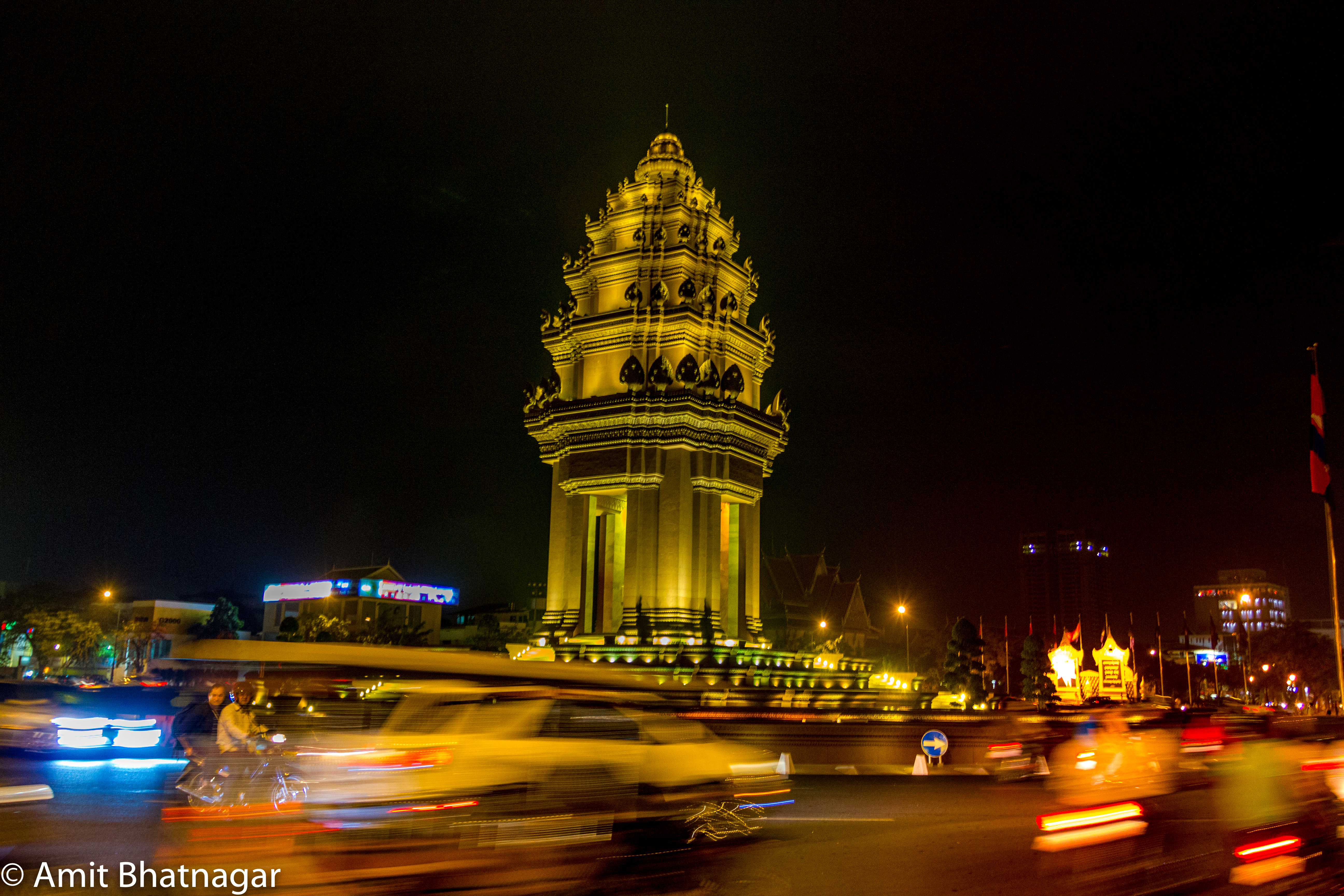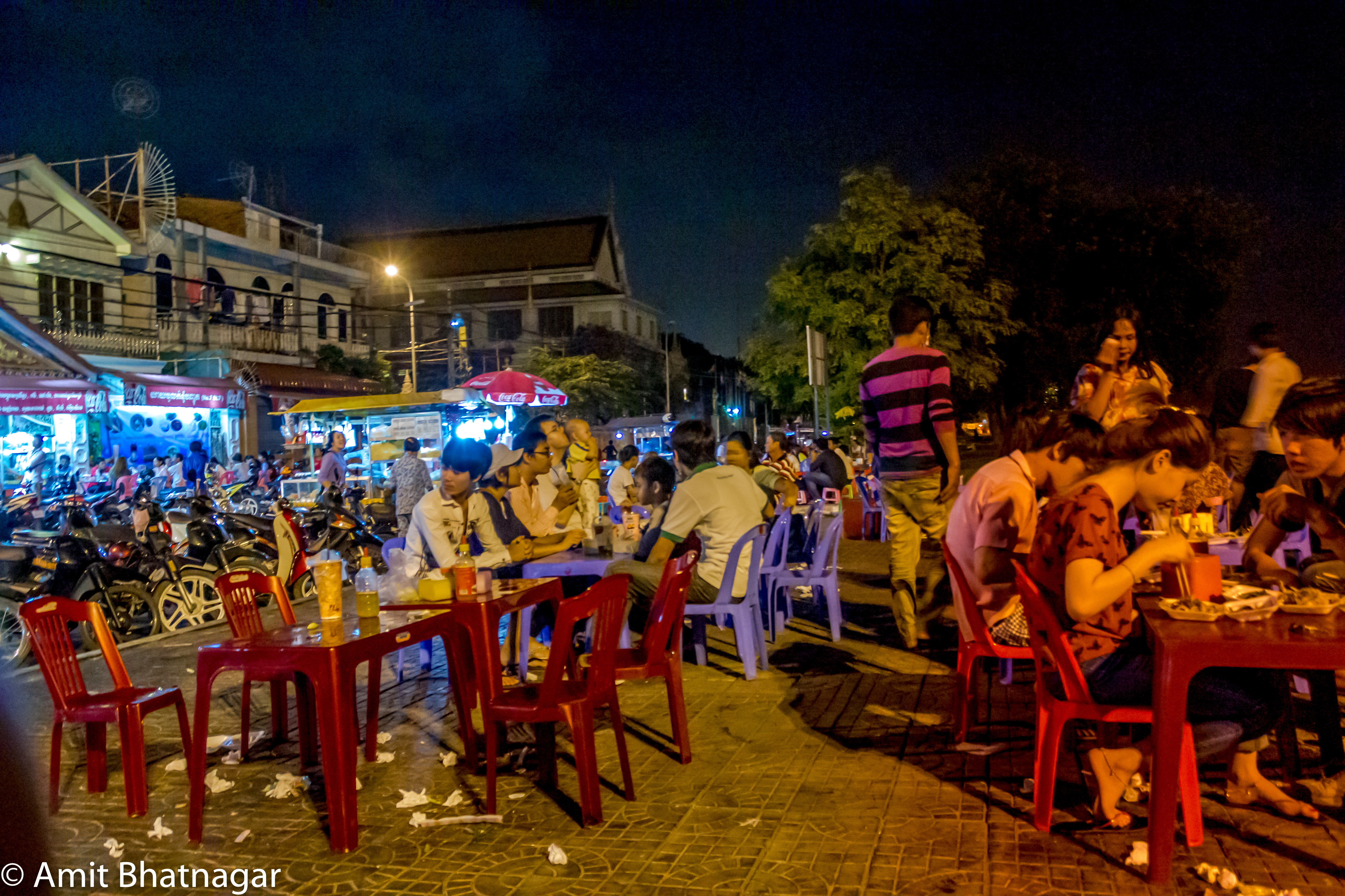 The highlight of the second swing in Phnom Penh was the local dinner. In one of the parks right next to the hotel a bunch of street vendors served delicious local food on plastic tables and stools. There were many types of meat, some noodles and a few other things we didn’t fully understand but tried anyway. The language spoken was the language of food. We walked around a bit and realized it was the area with government offices and buildings. There were a few pagodas and local landmarks that gave me some opportunities to use the camera.