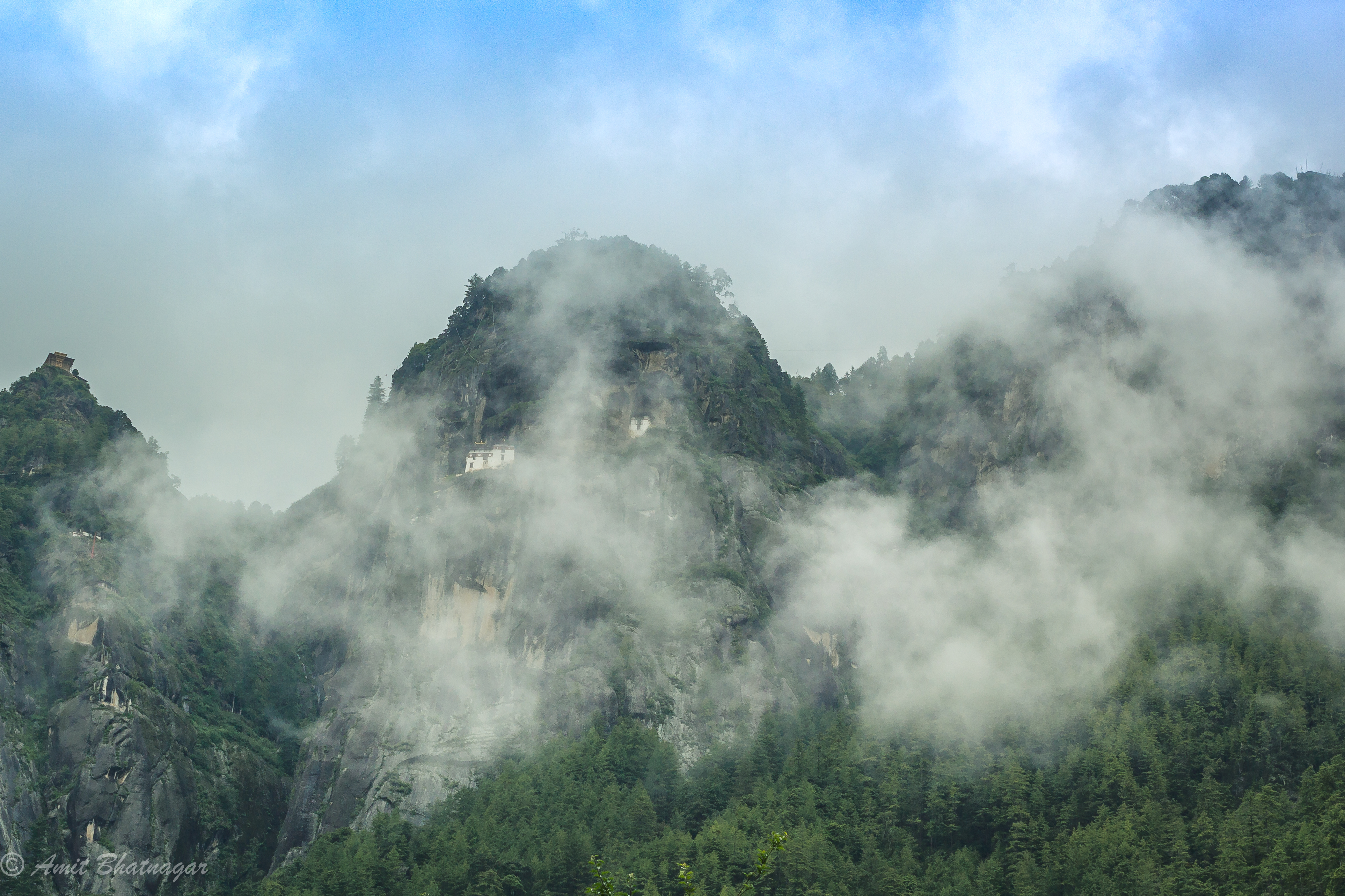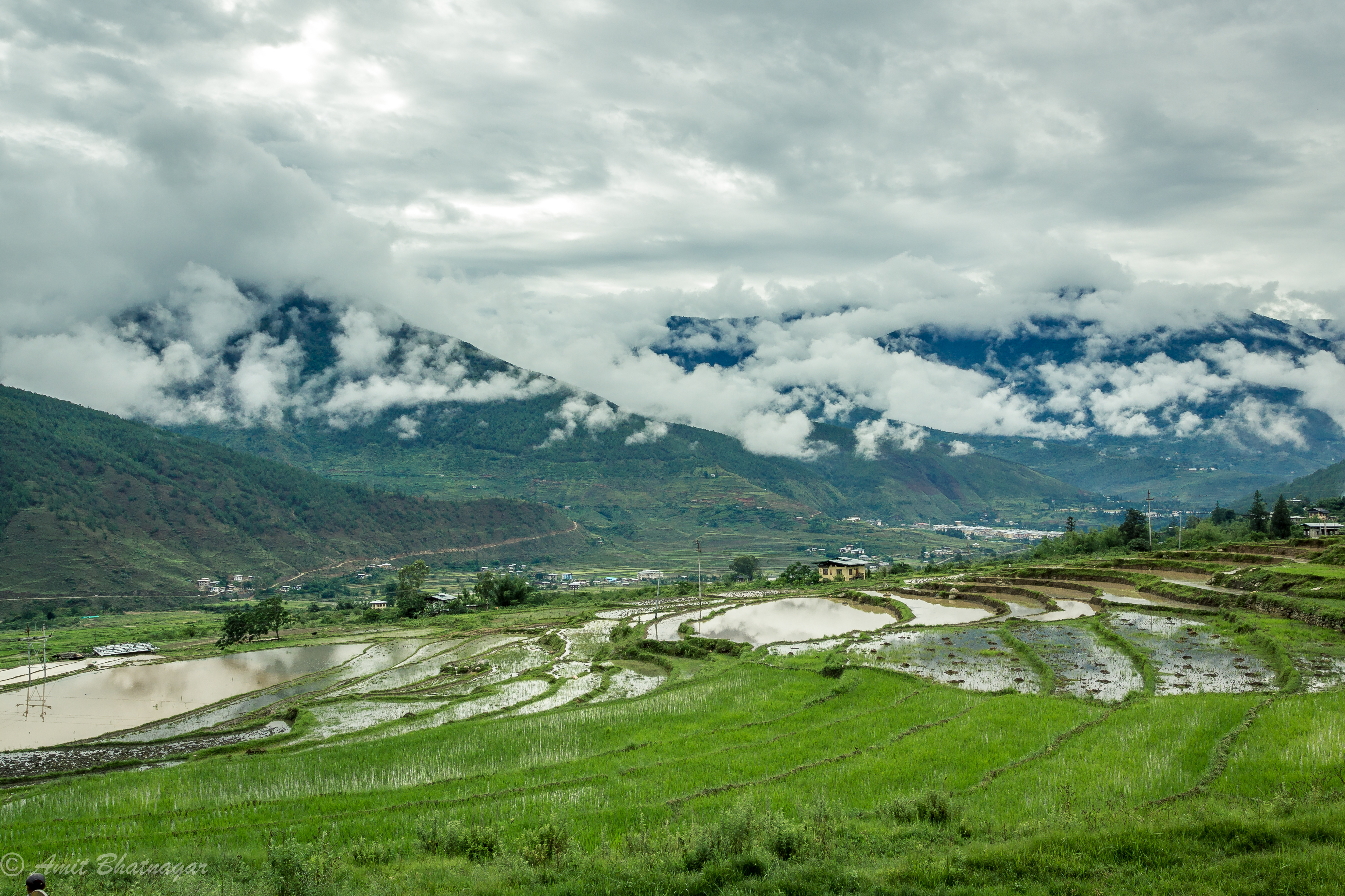 The next day we were up early for the much-anticipated hike up to the Tiger’s Nest – a stunning monastery perched on the edge of a steep cliff. It is an amazing site to watch and is probably the most recognized landmark of Bhutan. The drive from the hotel was about 30-minutes and we were dropped at the starting point of the steep and long hike. From among the low hanging clouds, we could see the faint outline of Tiger’s Nest and excitement was growing. This is when disaster struck, in the form of rain. We had to cancel our plans to hike up and this was sadly our last day in the country. We spent the day walking around Paro. We found a local market with a local restaurant to have a wonderful lunch at. The market was surrounded by beautiful hills and the shops full of very expensive souvenirs – a great place to walk around, not necessarily to shop.