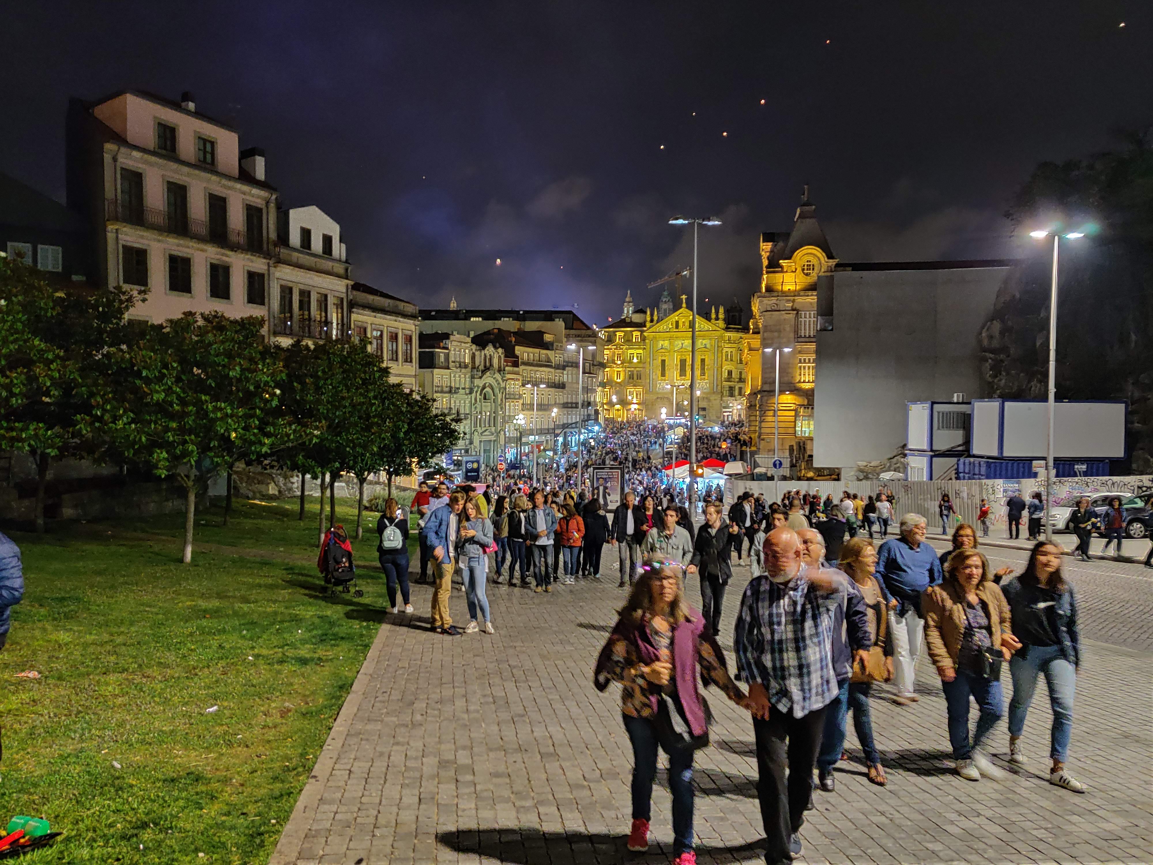 The festival does seem to center around everyone just walking around with the hammer tapping everyone else on the heads and wishing Bon San Juan. But at a closer look, there is so much more to the festival than that. It was described by some journalists in 2004 as one of the best midsummer festivals in Europe which is still unknown outside Portugal – that fact hasn’t changed much to date. The festivities start in the early evening on the 23rd as everyone heads downtown and toward the Douro river to start eating and drinking. Every place is full and the streets are buzzing with energy. The concerts start as the sun sets and liquor bars are set up all across the city. Once it gets a little dark the hot air lanterns start showing up in the sky making a pretty city even better. There are hundreds of them that are launched from pretty much everywhere. It is a spectacular sight in the sky and also around town as people are busy lighting up these lamps in small groups.