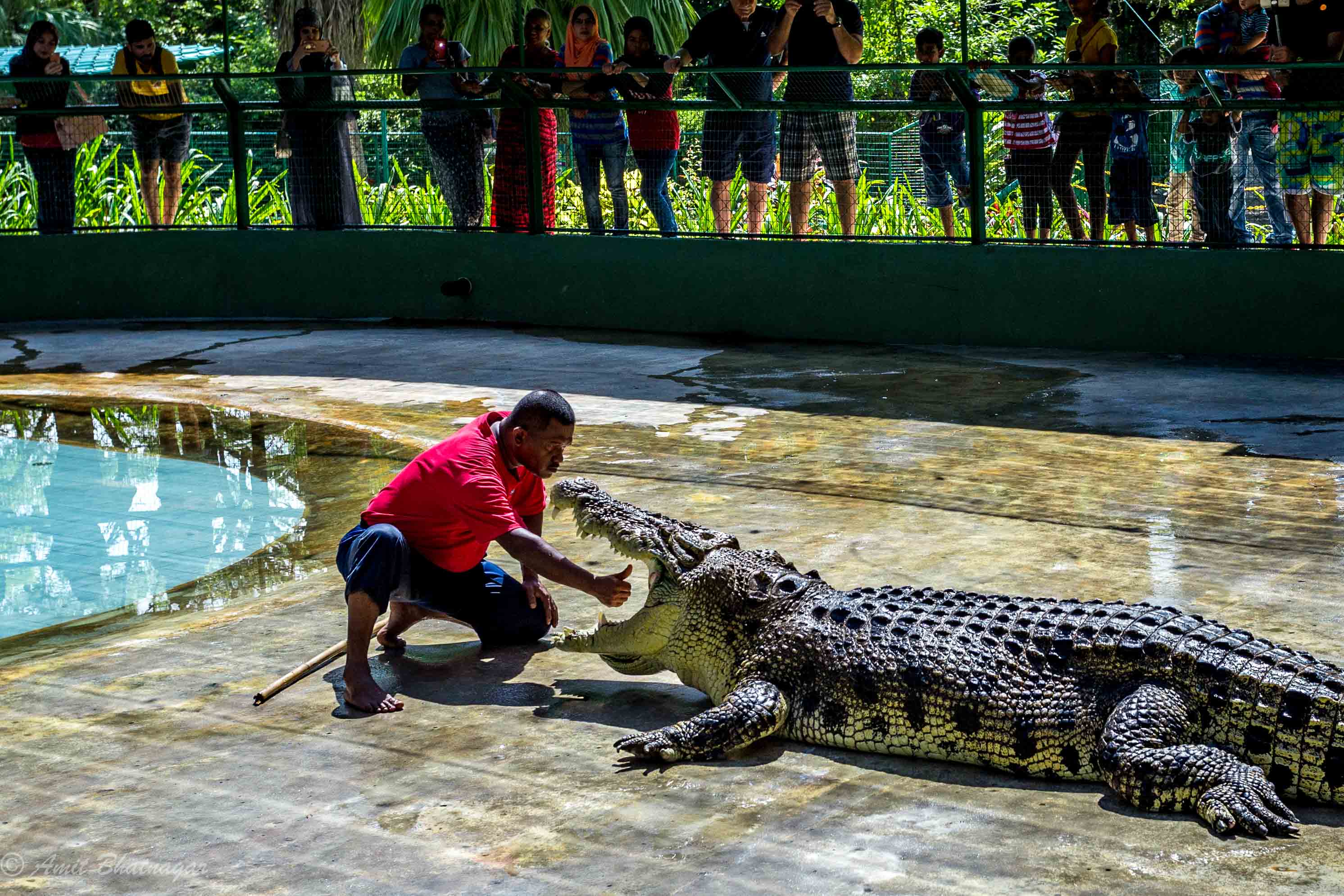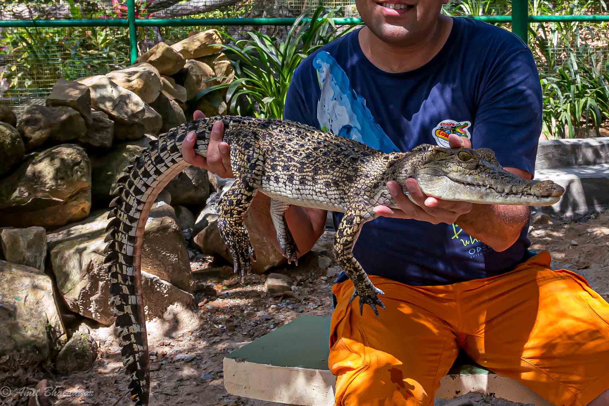 The crocodile farm wasn’t too far away and it happened to be relatively empty on the day I landed up there. There are usual ponds with dozens of baby crocodiles, a large lake with several grown crocodiles lounging around, and then some amazing activities. There is the inevitable cafe that serves fried crocodile tail – it is hard and chewy meat. There was a crocodile feeding show that was short but you got some good view from a bridge built over the pond. Another show where a man put his hand inside a crocodile’s mouth. This one was more showbiz than anything really interesting. The crocodile kept his mouth open for over 20 minutes and in the middle of that, a guy put his hand inside for some 5 seconds. Daring, but not fun to watch. The highlight was the ability to hold a small crocodile after paying about 20 USD. The crocodile was still about 2.5 feet long and could have bitten my hand off. It was probably sedated or trained, but it stayed calm enough for me to hold it for about 2-3 minutes.