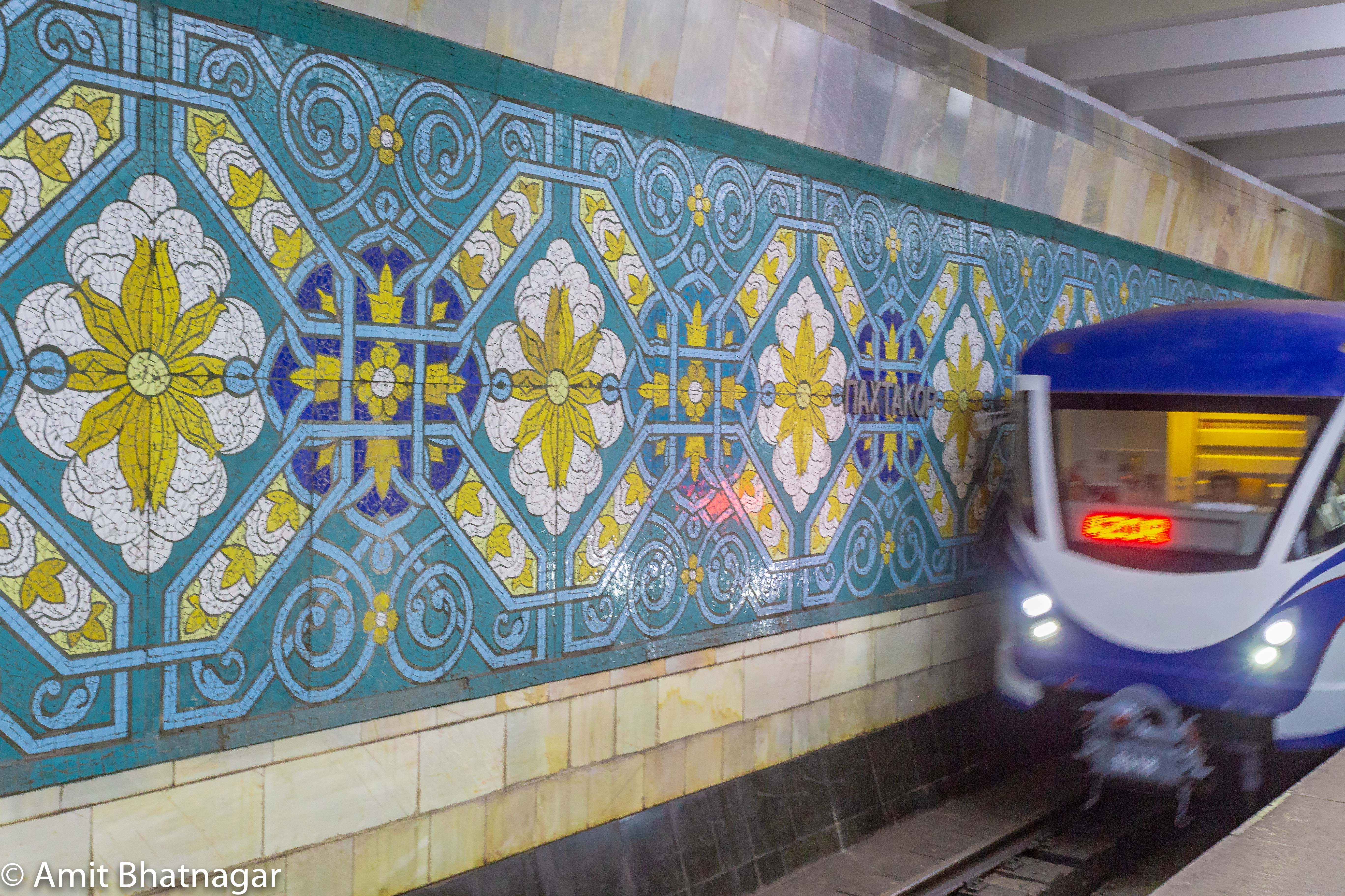 If compared to any Central Asian or even European capital, what Tashkent misses by the absence of a true commercial city center, it more than makes up with thousands of fountains. Every large park worth its name would have a display of dancing fountains with hundreds, if not thousands, of streams of water sending across a happy message. The city is amazingly green with wide roads and very little traffic. For some strange reason, we always saw loads of cars parked around and only a handful on the road. I haven’t seen all the Central Asian country capitals but the two that I have seen, have a well spread out city center with a monument and the backdrop of archaic-looking hotel names after the country. Hotel Uzbekistan held its ground, all the same, illuminated by cheap lights that made it look like an advertising hoarding at night. The monument of Taimur was quite impressive, though.
