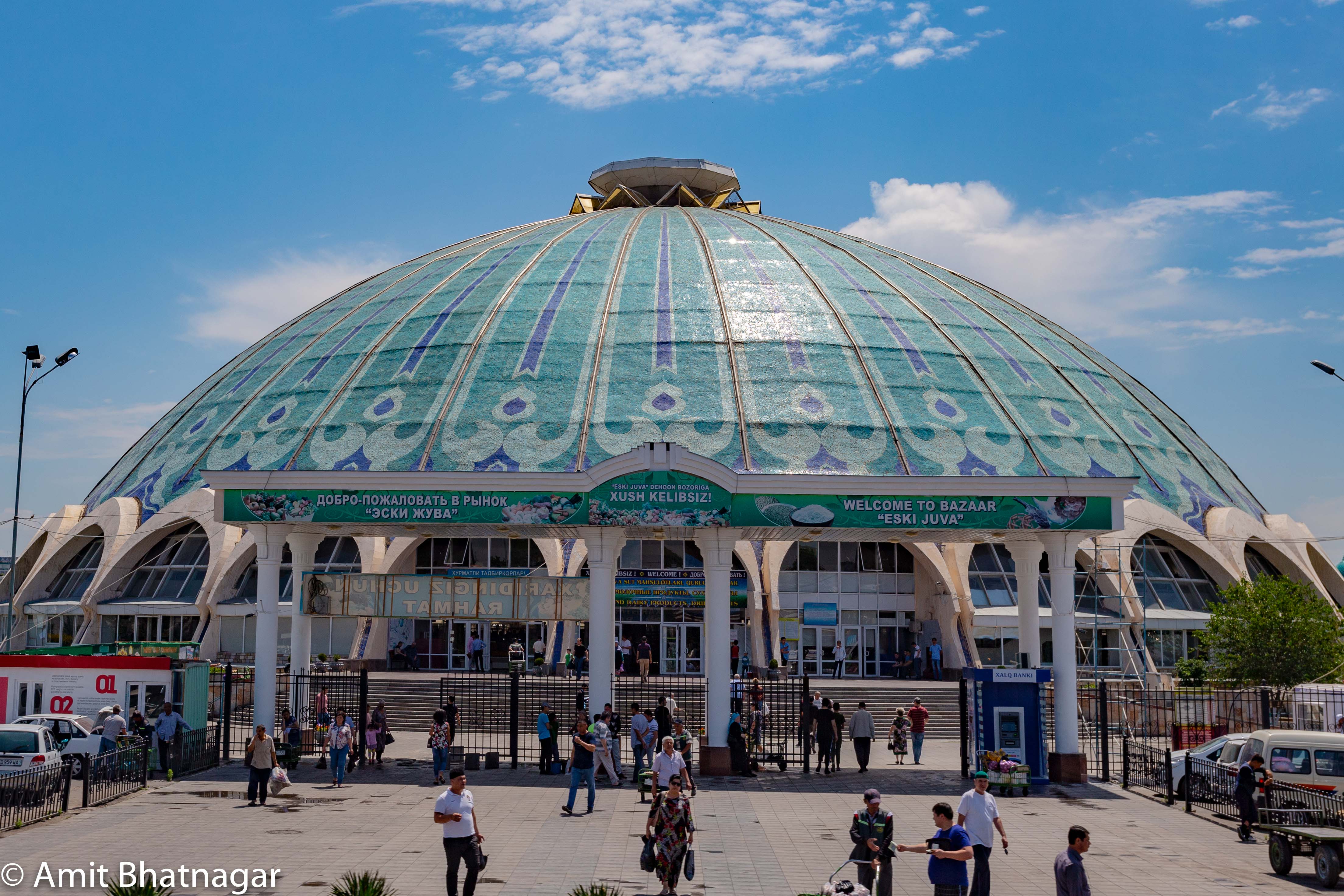 One of the most famous landmarks of the city is the Chorsu Bazaar. The glass dome houses two levels of sales floors. The lower one is dominated by butcher shops selling all forms of meat and some sellers of cheese and honey. The upper floor is mostly aromatic spices and dry fruits. The dome itself is surrounded by other marker areas that sell anything from clothes to spices (the cumin is quite famous) to household things.