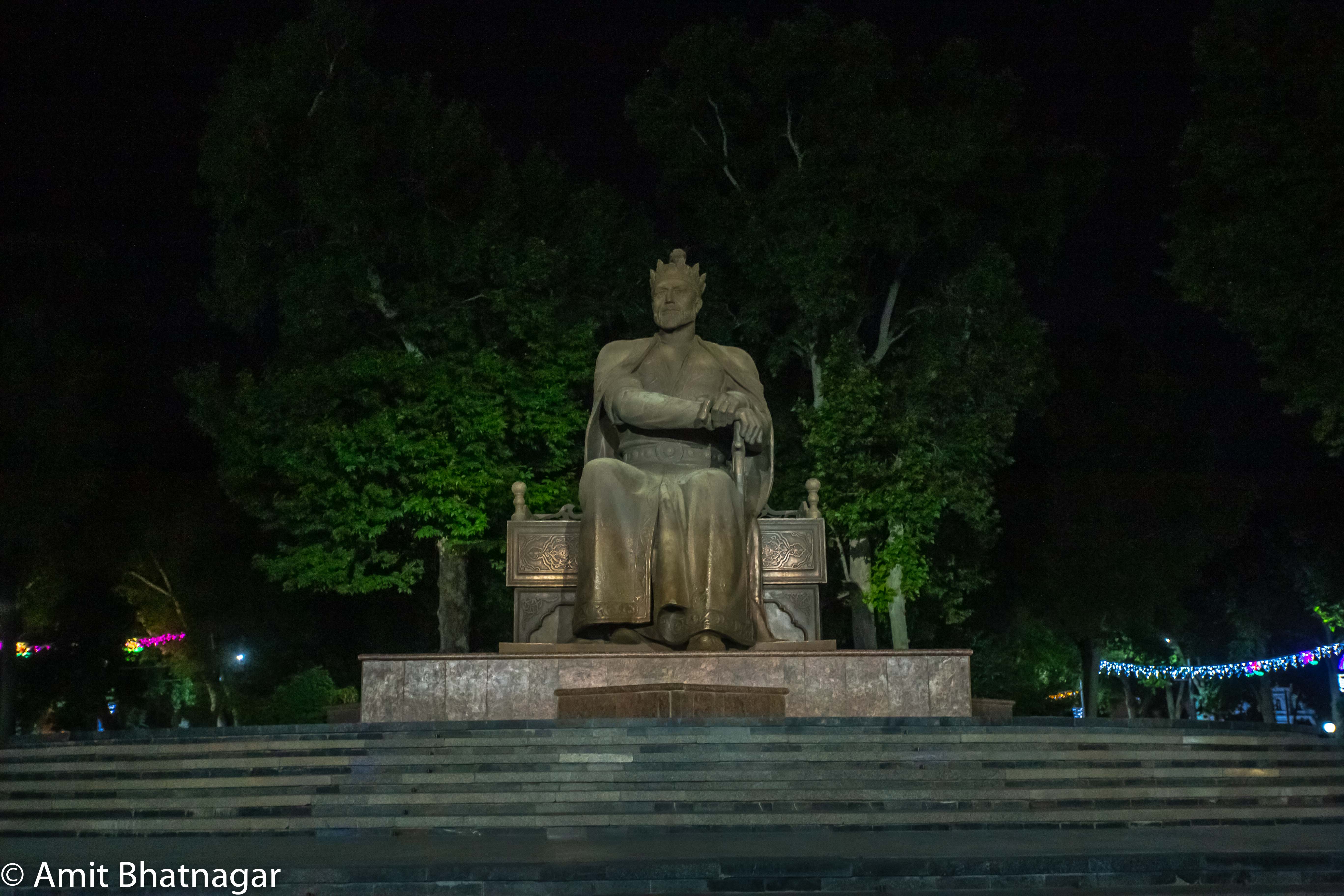 In the evening we decided to experiment with some fancy food at the restaurant Platan – frequented by luxury-seeking European tourists. The food was good and the service was average leaving us craving for just more Shashlik and Pulao. We did take a post-dinner stroll to click the statue of Timur sitting on his throne at an intersection just outside our hotel.