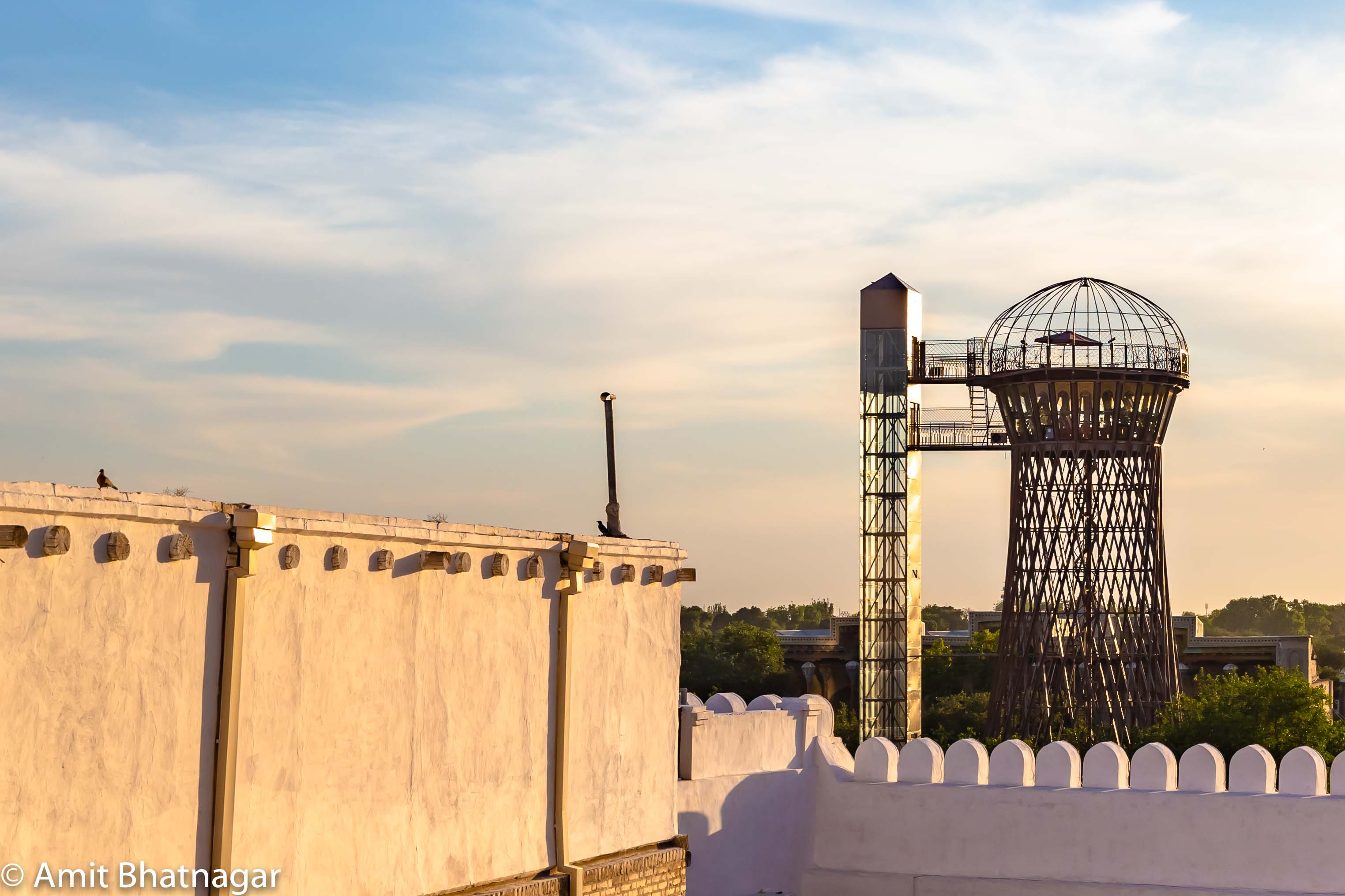 It was a hot day and a little too hot for walking out, so we took a short break and then stepped out to the city center in the evening. The architecture was pretty much all from a few hundred years ago, though none of the structures were very grand. We decided to take recommendations from Google Trips. The resulting trip started with a cab ride to the Chashma Ayub Mausoleum – a museum to the water distribution system of Bukhara with an old well inside that you can sample water from. The place is quite small and not worth the entry fee, but then once we had paid, we heard the stories from the guy there and tasted the water – oily and weird.