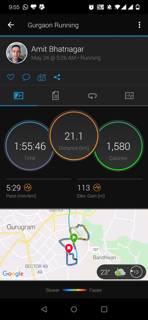 I had been quite active lately making the best use of the period between the 2 Covid waves in India. I was running almost daily and playing badminton or soccer often. I had completed an under 2 hour half marathon in early April and ran up 2.5km on a 12% incline in 14 min. I felt good! This was until I woke up feeling slightly groggy after an afternoon nap on April 19th and the thermometer read 100. I won’t go into the details of covid, but just a few points. I had an excellent doctor who kept me on minimal medicines. I had 10 days of fever with a bad cough but the fever only crossed 101 once. I was feeling quite active and good till day 4 when energy levels dropped a bit. I was still restless. I was never breathless and SpO2 never dropped below 98.