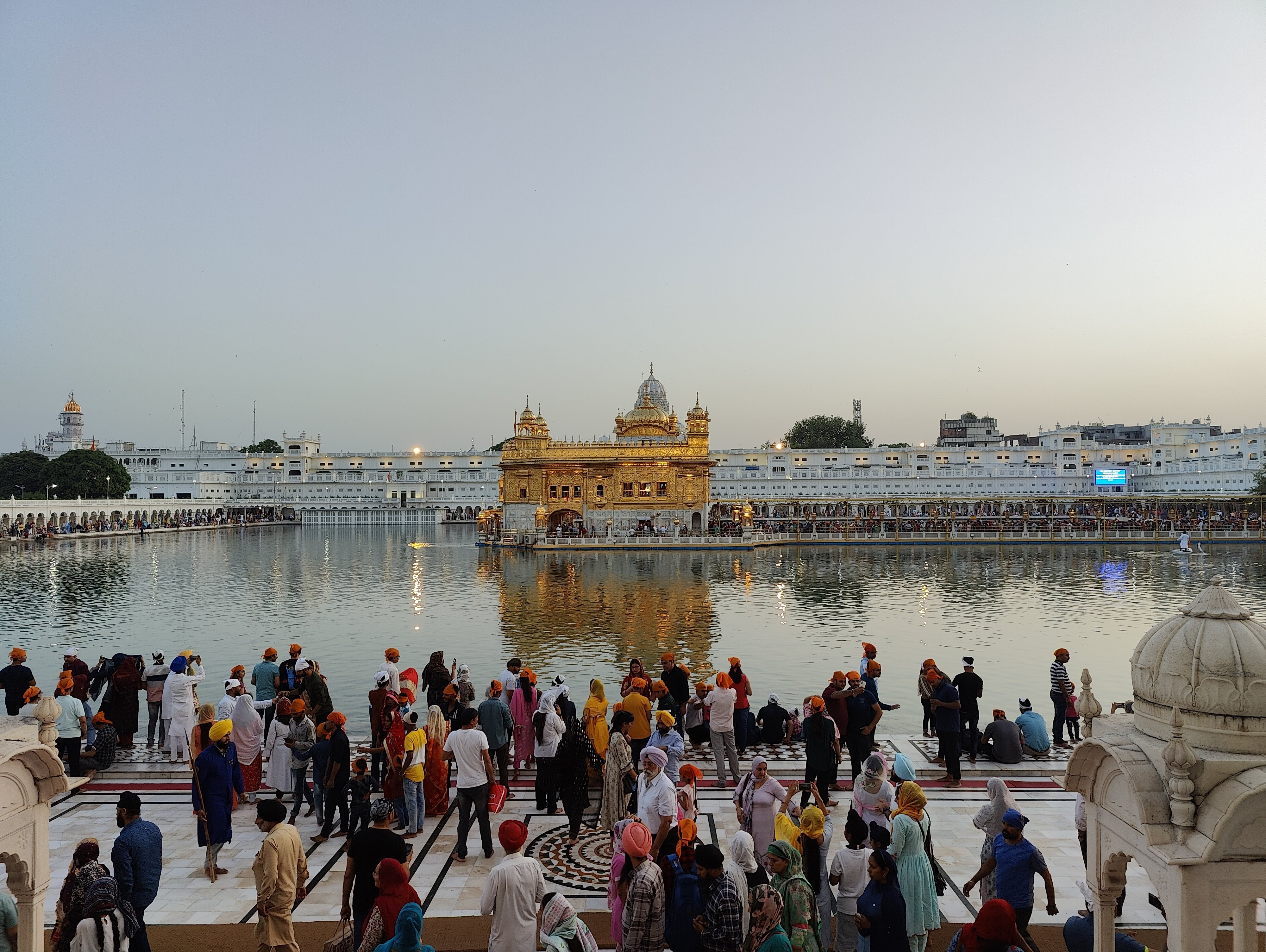 The cabs dropped us about 700 meters from the temple entrance and then we walked the rest of the way through the crowded market. We bought head coverings on the way and passed by the narrow entrance to the infamous Jaliawala Bagh. Shoes needed to be dropped at a well-managed token counter and then you walk down a marble staircase to a fabulous first view of the temple. The holy pond surrounds the golden structure, except for the narrow walkway. The first order of business is to bow to the holy place by kneeling and touching your forehead to the ground. A walk around the pond is customary, though a dip in its waters is optional. On the way, you can buy the prasad of Kada havla and also enjoy a meal at the ‘langar’. The line to enter the golden temple can be a couple of hours long on the weekend, so we skipped. After spending a few more minutes clicking a few pics and listening to the last verses of the adraas, we walked out and got into our cabs back to the hotel.