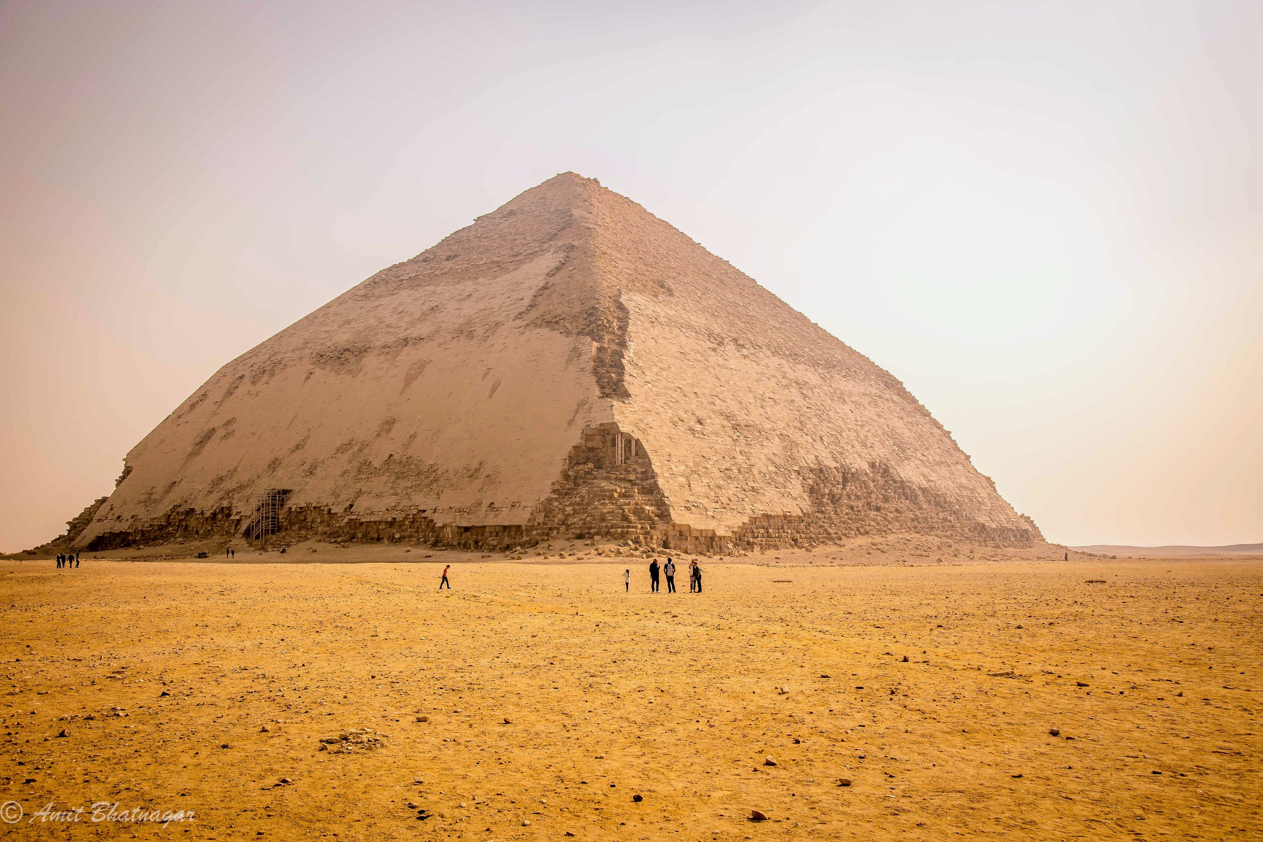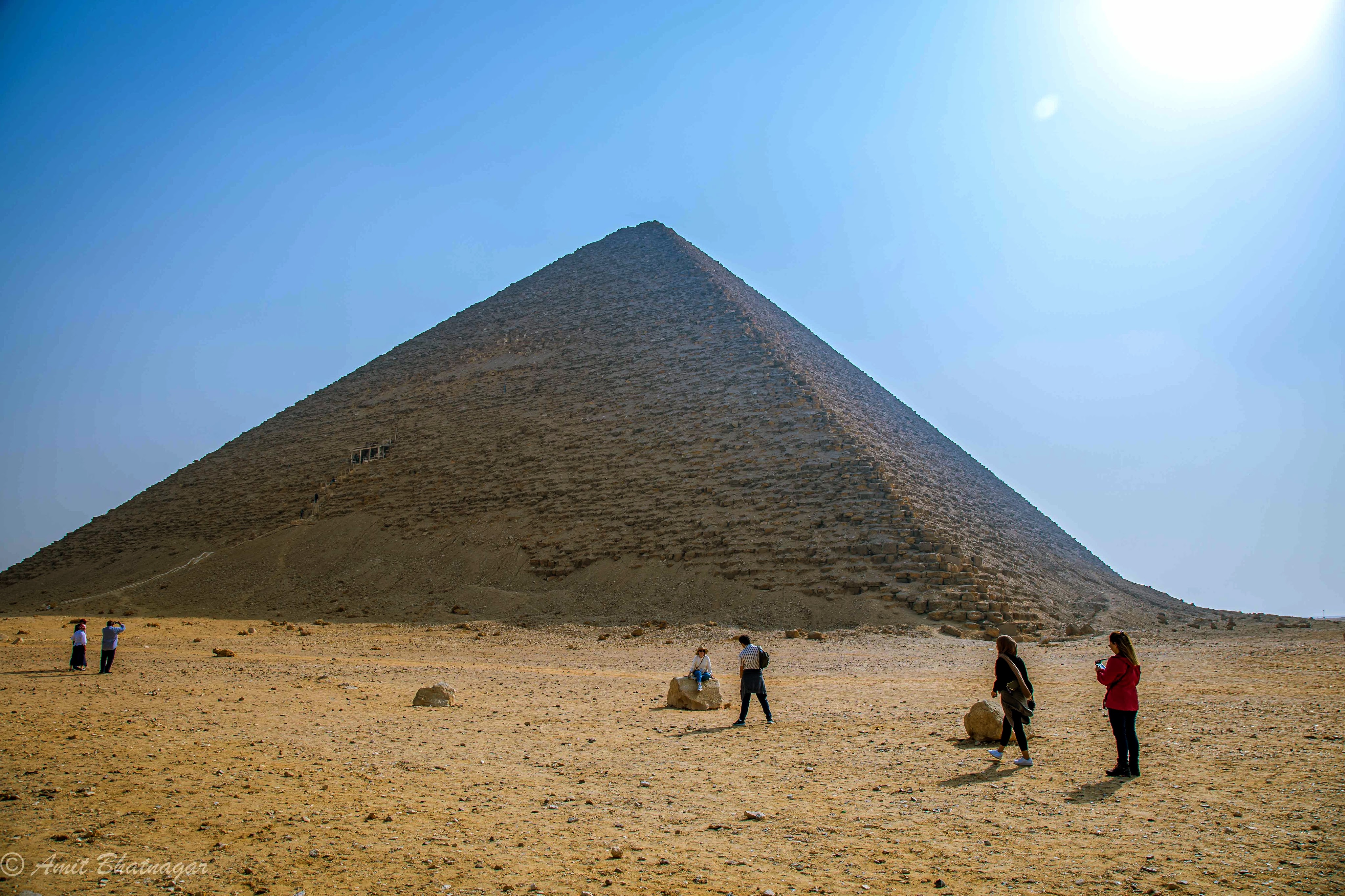 There are two other pyramids in the area that are worth a visit, each being just a short drive away. There is the first large pyramid ever attempted – they started at a very steep angle and realized that it would be too tall when it finished. So they changed the angle mid-way and it is visible. The pyramid is a little asymmetrical and a little ugly. But they learn from their mistakes – the next pyramid is perfectly symmetrical and well constructed – just quite damaged. Time is not equally kind to all pyramids.