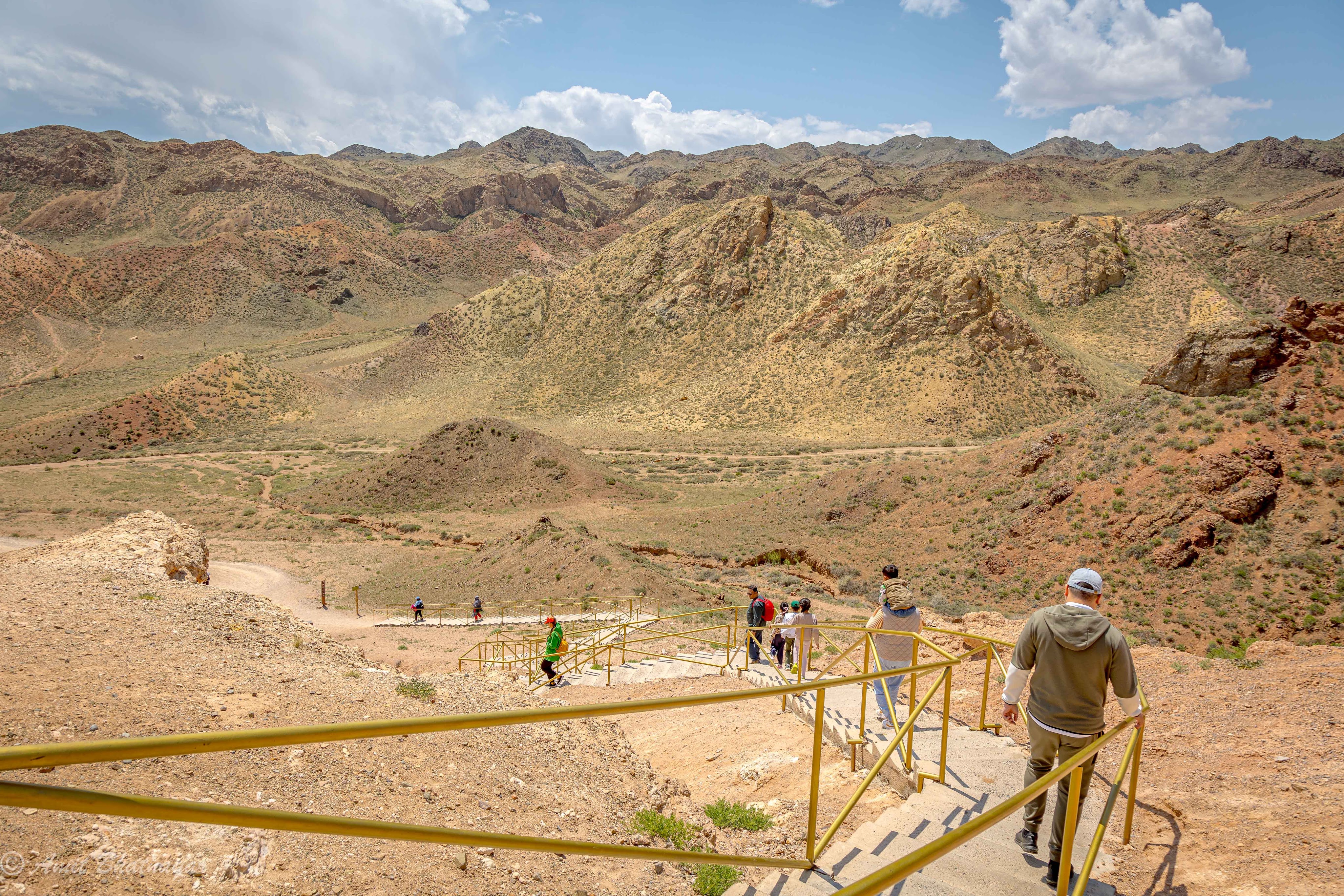 Most of what is good to see around Almaty is lakes, canyons, and a ski slope. The Kazakhs love to hike and there is an abundance of options of varying difficulty to choose from. Most will take you to a lake or some fabulous scenery. Charyn Canyon is 2 hours drive away and you can take a 3 km (one-way) hike to a river through the canyon from the starting point. Kolsai and Kaindy lakes are in the same direction but require longer drives. The Big Almaty lake is stunningly beautiful and also is a couple of hours drive away. There are some restrictions on the number of cars that are allowed inside, but travel agents have found a way around it. Medeu ski ring and the Shimbulak ski slopes are less than an hour away and offer some stunning sights and skiing. In the shoulder season you can find snow at the top. Kok-tobe hill is in the city and has an amusement park at the top.