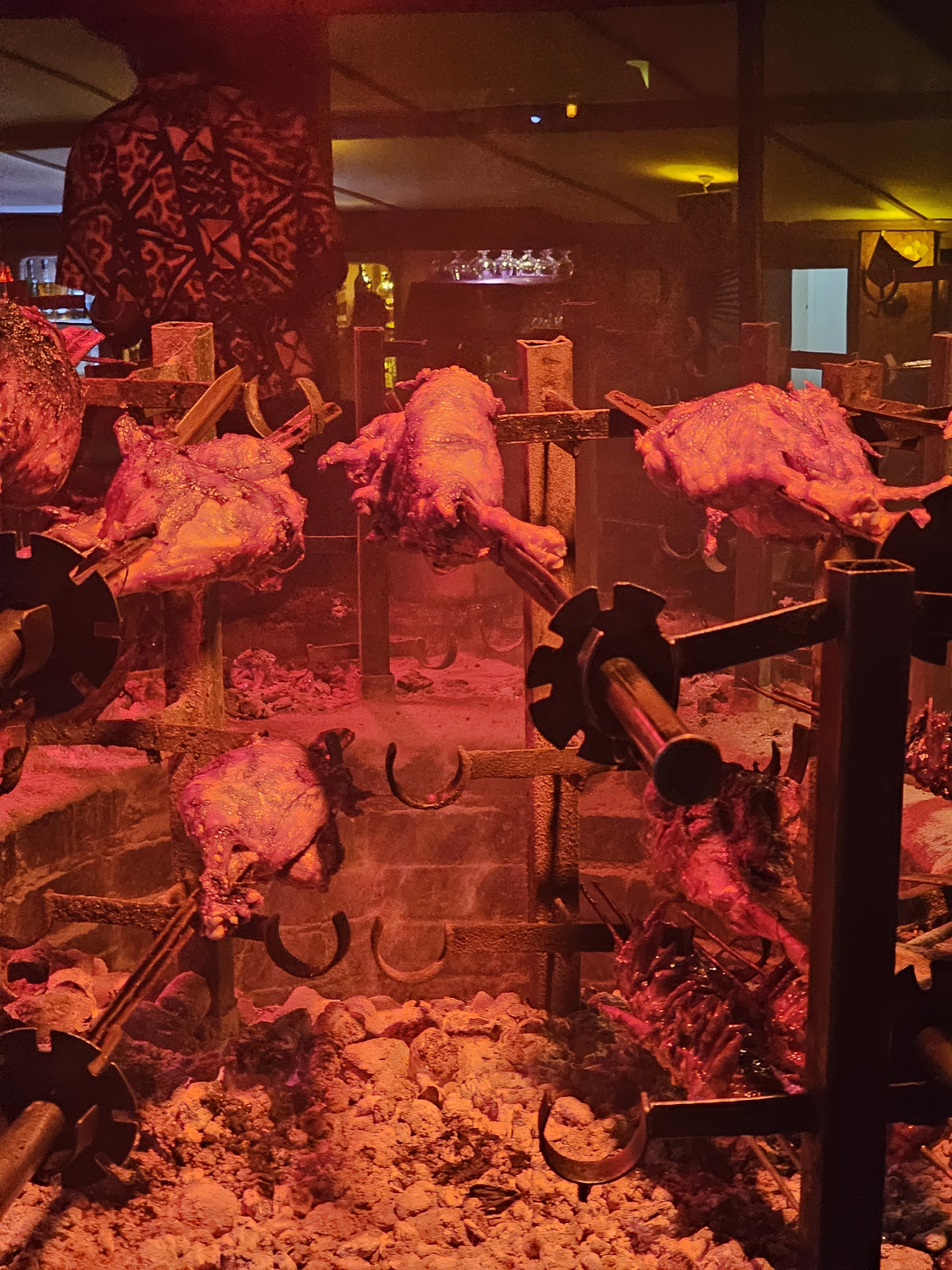There wasn’t enough time left to go back to the hotel and rest/change, as was the original plan. We headed straight to Carnivore, the most ‘famous’ restaurant in Nairobi and completely a tourist trap. The restaurant used to boast of a menu full of exotic bush meat till it was banned after COVID-19. Now the menu and the service are more like a Brazilian Churrascaria with on-table service of freshly grilled meats – mostly different cuts of beef, pork, alligators, crocodiles, and the like. It was a good experience but none of the meats were really spectacular and some were downright tasteless. The best thing I had there was a vodka version of the local ‘dava’ or medicine. It was just vodka with a lot of simple syrup and lime – delicious. There is a basic menu for any vegetrians but I assume its nothing to write home about.