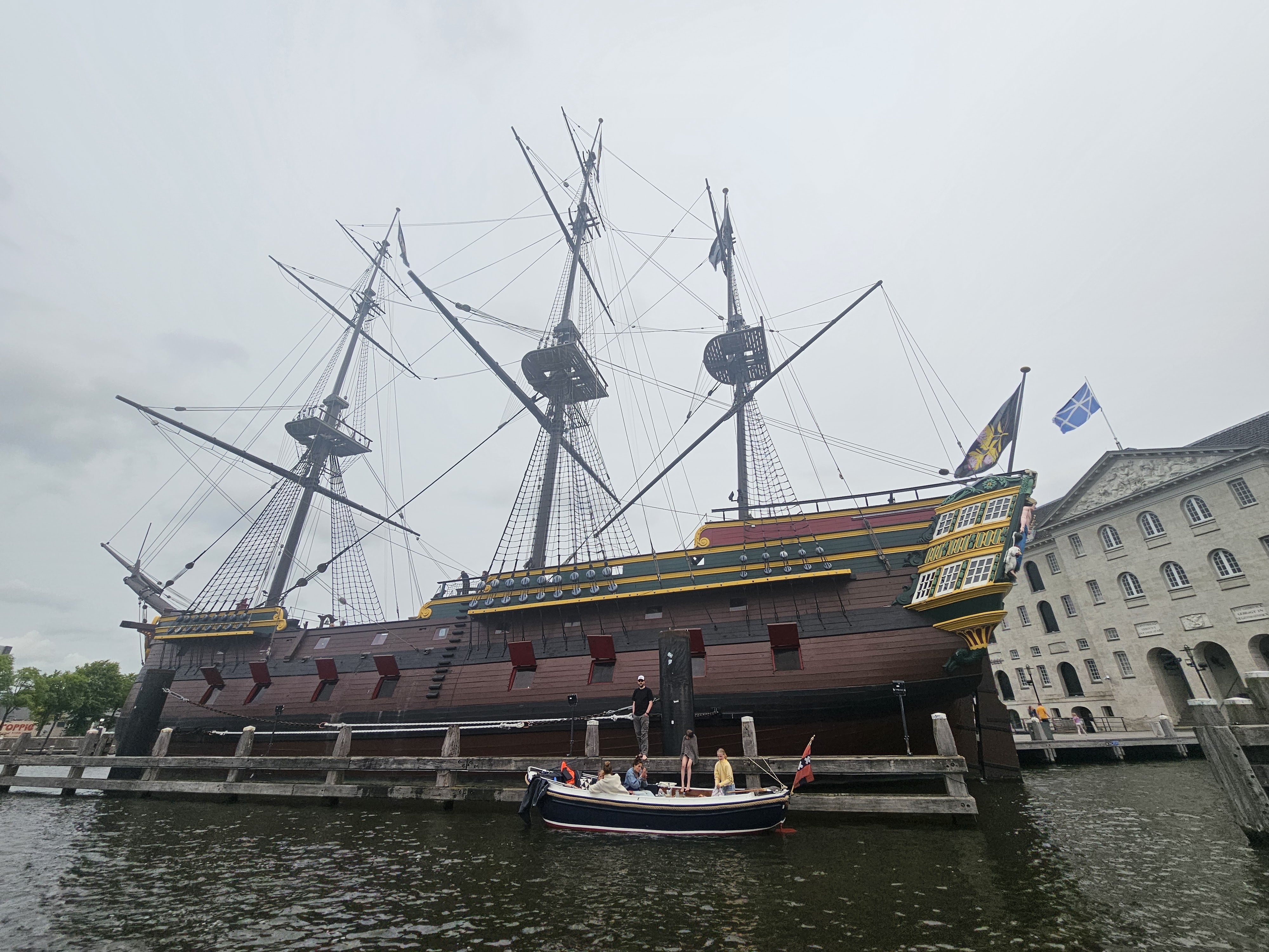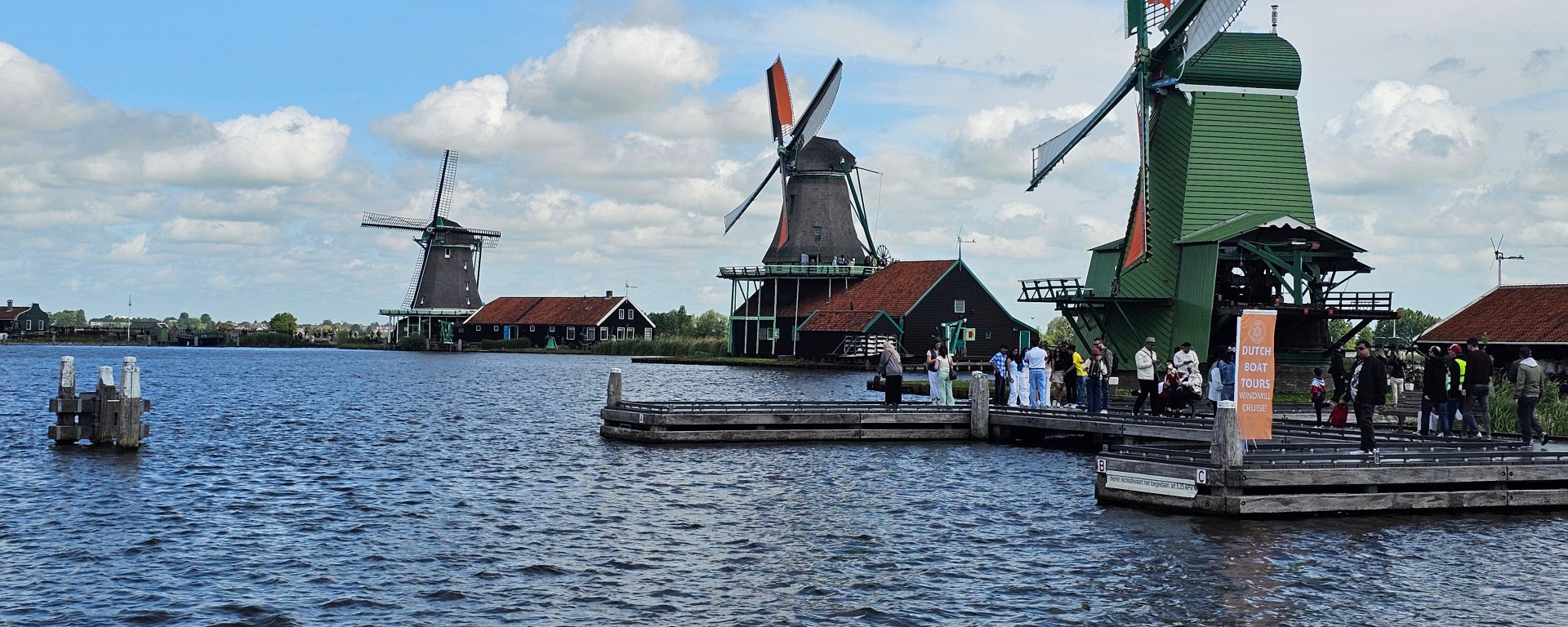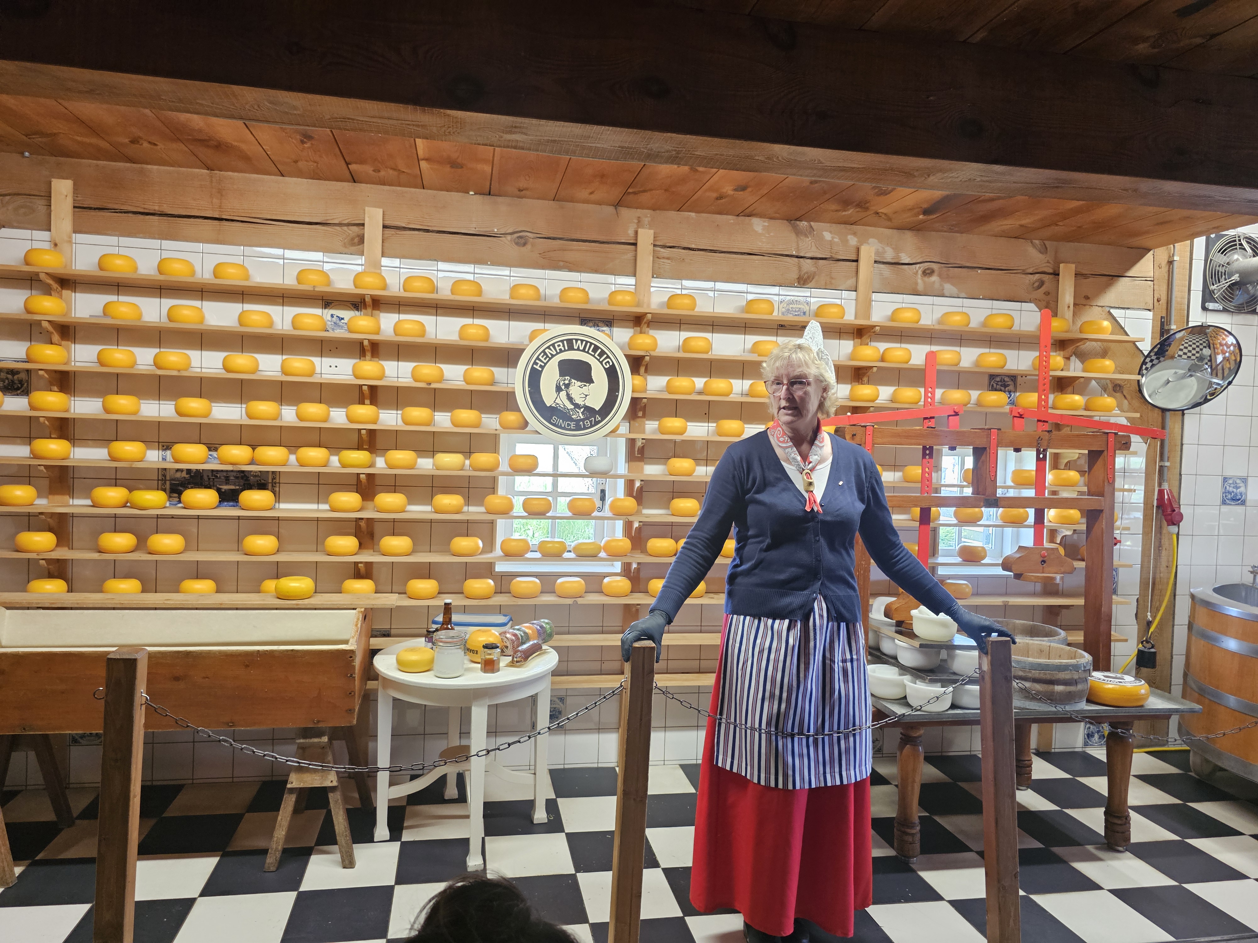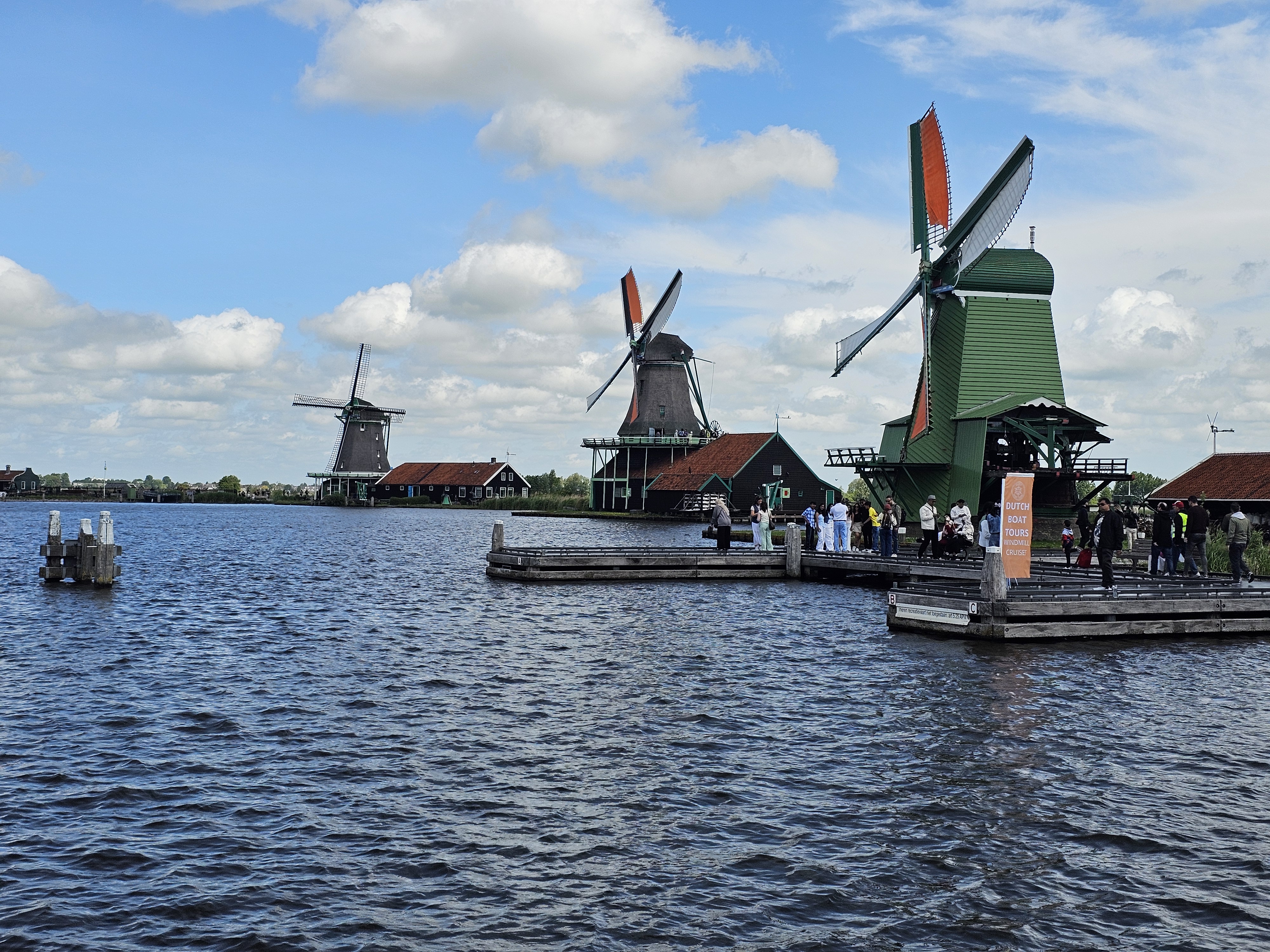 Monday started with a short run followed by that incredible breakfast again. The plan for the day was a half-day group tour of the Zaanse Schans. It is a small town renowned for its old Dutch-style windmills. The windmills weren’t originally built here, but they have been relocated to create a tourist attraction. A lot of local Dutch traditional stores and experiences have been added for good measure. While this has all the makings of a tourist trap, it was a lot of fun. To start with, the scenery was stunning, with a lake and some old houses all around. The stores were all a mix of experience (watch them make it) and then buy. There were clogs (local Dutch wooden shoes), Gouda cheese, and some chocolate. We bought some of it all and even tried some other local food. Walking up a functional windmill was amazing and the views even better. Just be careful not to be hit by the spinning blades.