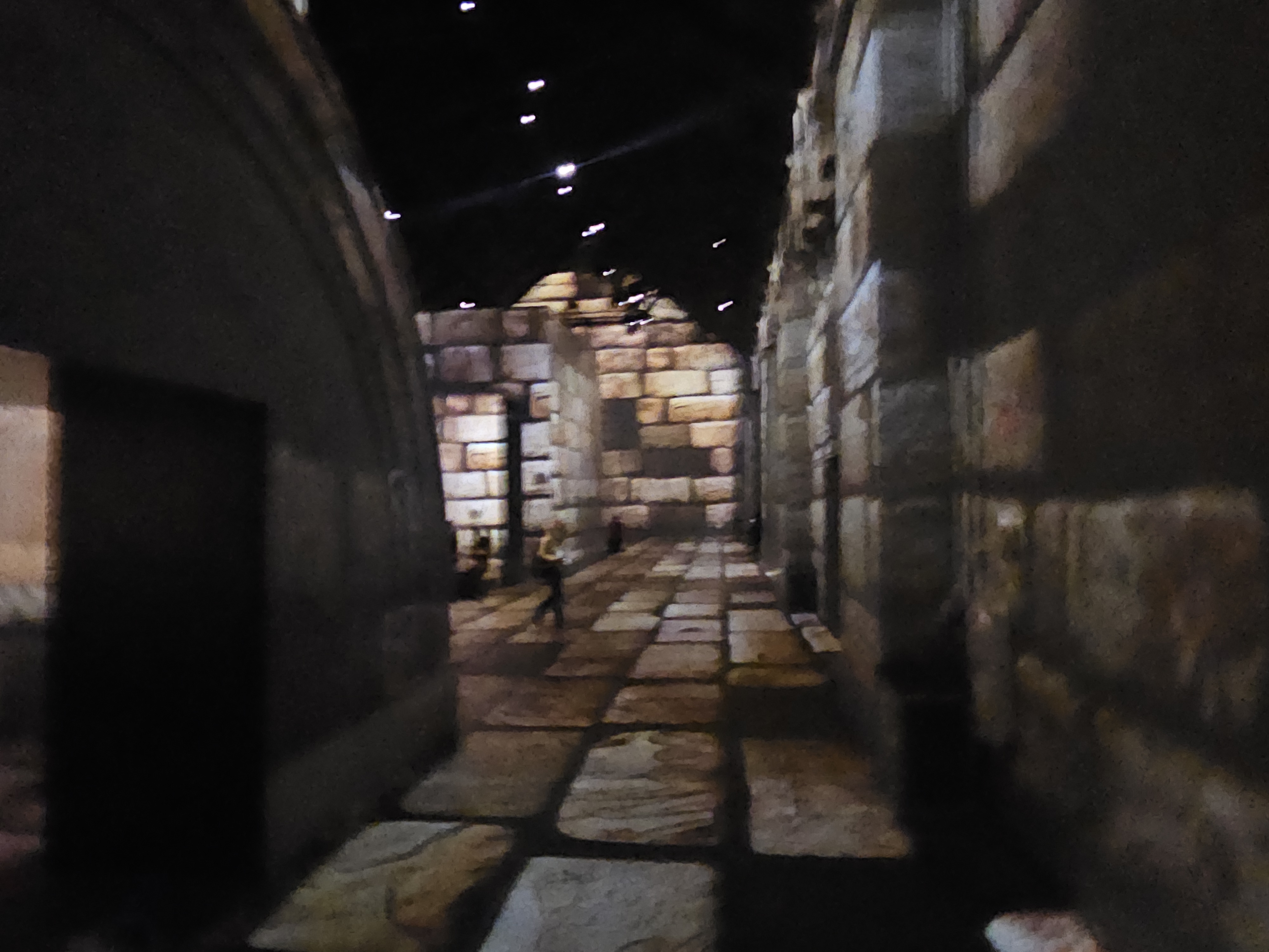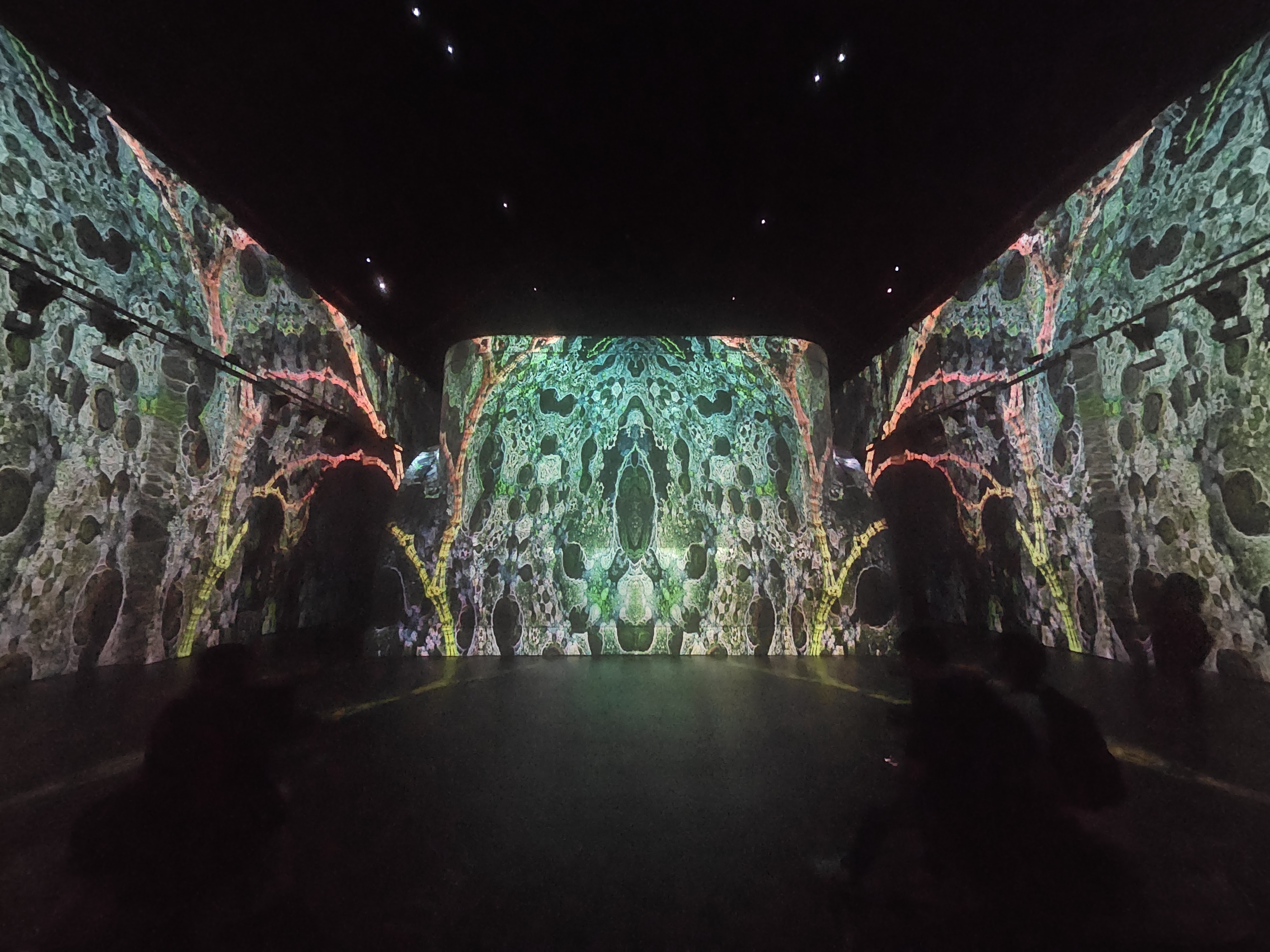 The place is in the middle of a park. It was still a walk from where the cab dropped us. Fortunately, the rain stopped just in time. The venue is a large set of halls, with the themed projections all around you. Each space offered a different experience, and we were free to walk around and spend time anywhere. There were projections all around us, and it was truly a wonderful play of light. There were areas where you sit, walk around, or even lie down and enjoy the experience. A story is told, but it repeats. So, you don’t need to arrive right at the beginning. The visuals are more powerful than the story and they are stunning